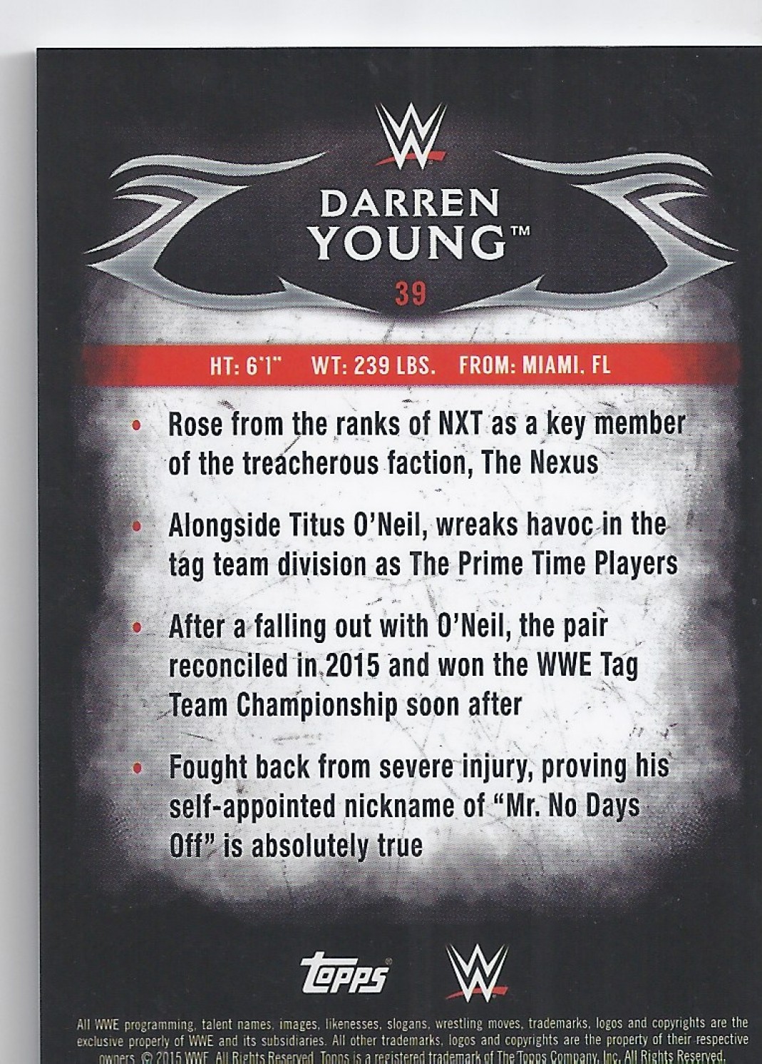 2015 TOPPS WWE UNDISPUTED Base Card 39 DARREN YOUNG