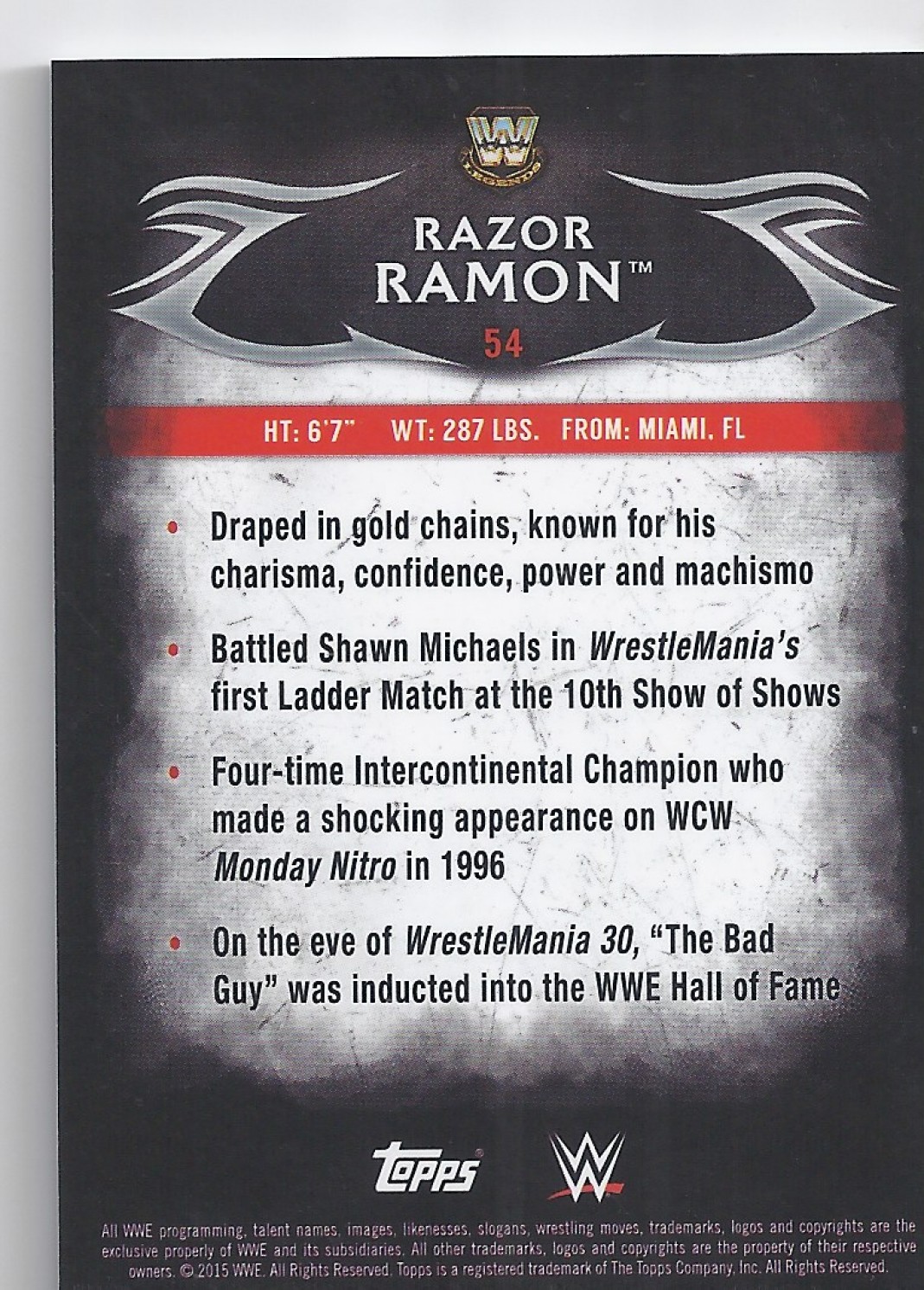 2015 TOPPS WWE UNDISPUTED Base Card 54 RAZOR RAMON SCOTT HALL