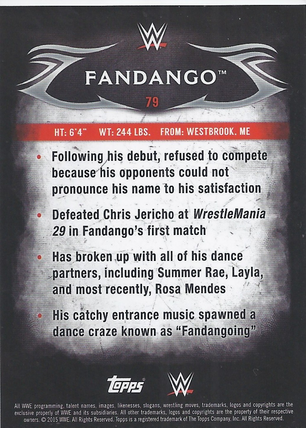 2015 TOPPS WWE UNDISPUTED Base Card 79 FANDANGO