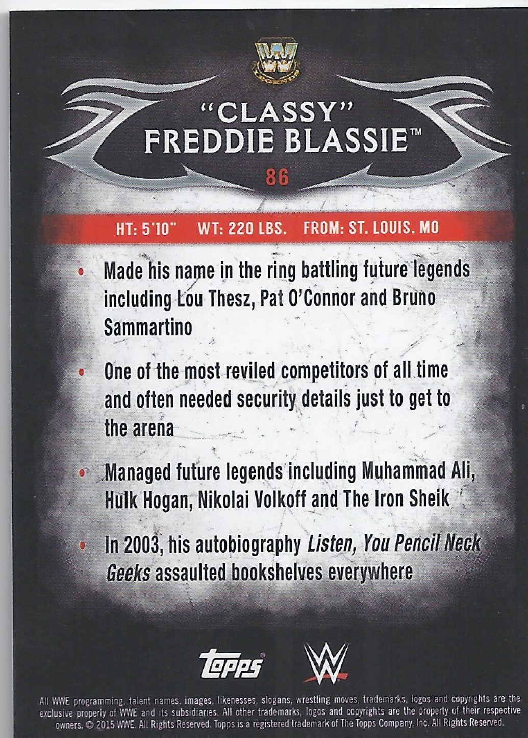 2015 TOPPS WWE UNDISPUTED Base Card 86 "Classy" FREDDIE BLASSIE