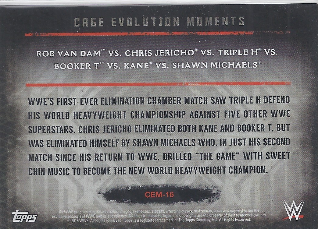 2015 TOPPS WWE UNDISPUTED Cage Evolution Moments BLACK PARALLEL Card CEM-16 ROB VAN DAM Vs CHRIS JERICHO Vs TRIPLE H Vs BOOKER T Vs KANE Vs SHAWN MICHAELS 54/99