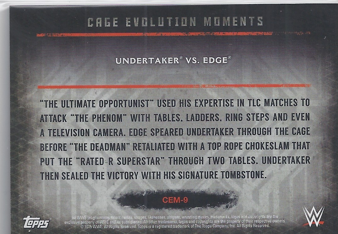 2015 TOPPS WWE UNDISPUTED Cage Evolution Moments BLACK PARALLEL Card CEM-9 UNDERTAKER Vs EDGE 52/99