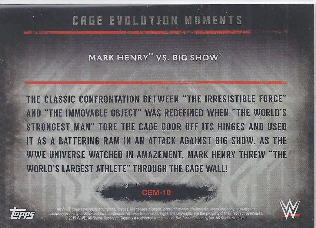 2015 TOPPS WWE UNDISPUTED Cage Evolution Moments Card CEM-10 MARK HENRY Vs BIG SHOW