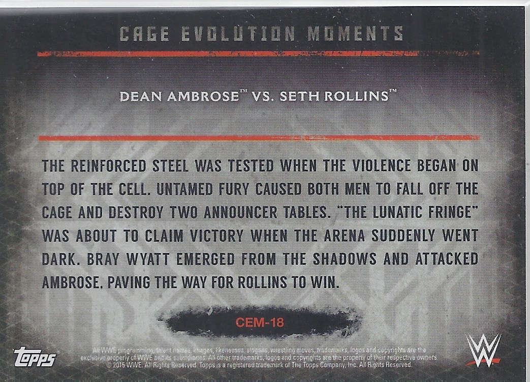 2015 TOPPS WWE UNDISPUTED Cage Evolution Moments Card CEM-18 DEAN AMBROSE Vs SETH ROLLINS