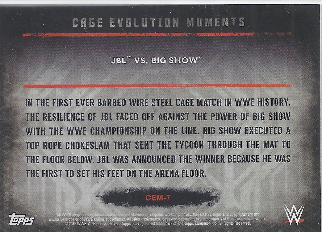 2015 TOPPS WWE UNDISPUTED Cage Evolution Moments Card CEM-7 JBL Vs BIG SHOW