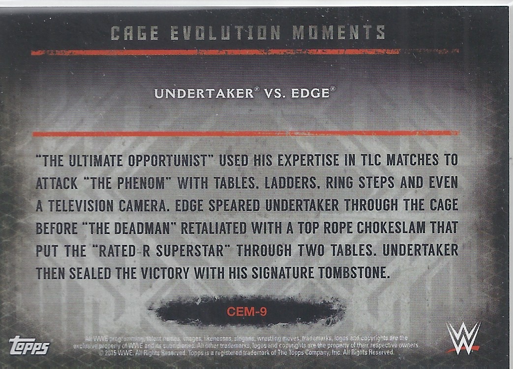 2015 TOPPS WWE UNDISPUTED Cage Evolution Moments Card CEM-9 UNDERTAKER Vs EDGE
