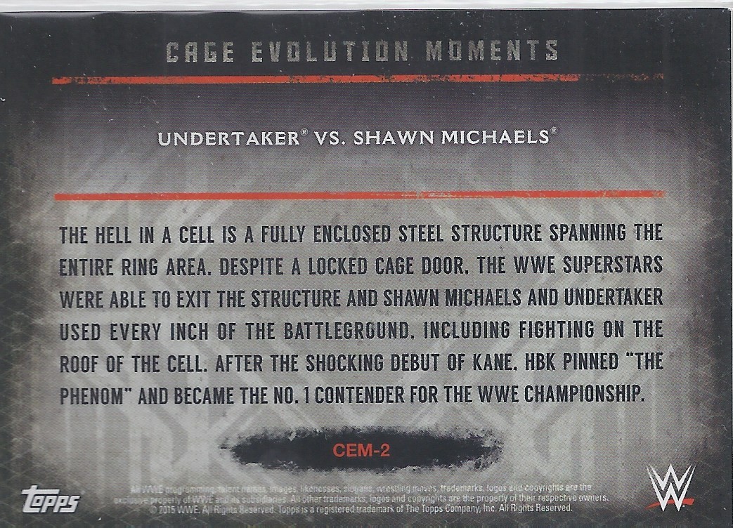 2015 TOPPS WWE UNDISPUTED Cage Evolution Moments SILVER PARALLEL Card CEM-2 UNDERTAKER Vs SHAWN MICHAELS 12/25