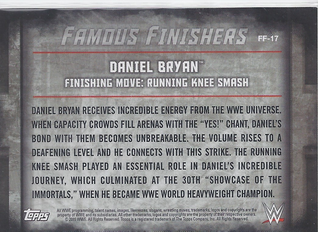 2015 TOPPS WWE UNDISPUTED Famous Finishers Card FF-17 DANIEL BRYAN RUNNING KNEE SMASH