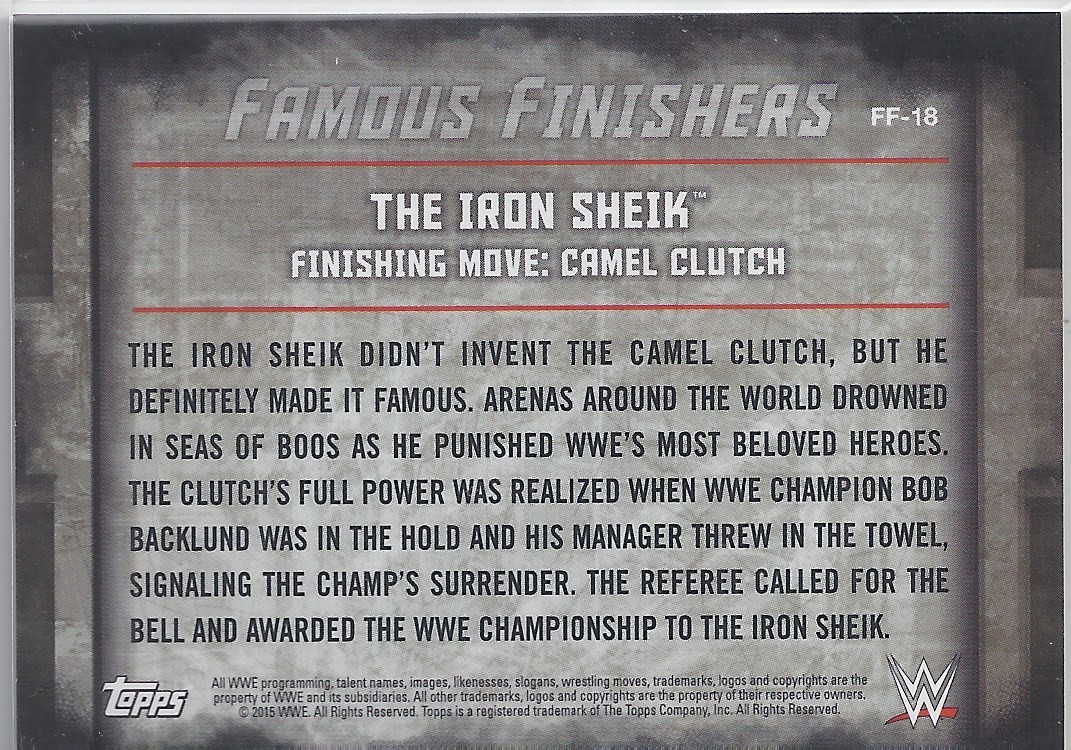 2015 TOPPS WWE UNDISPUTED Famous Finishers Card FF-18 THE IRON SHEIK CAMEL CLUTCH