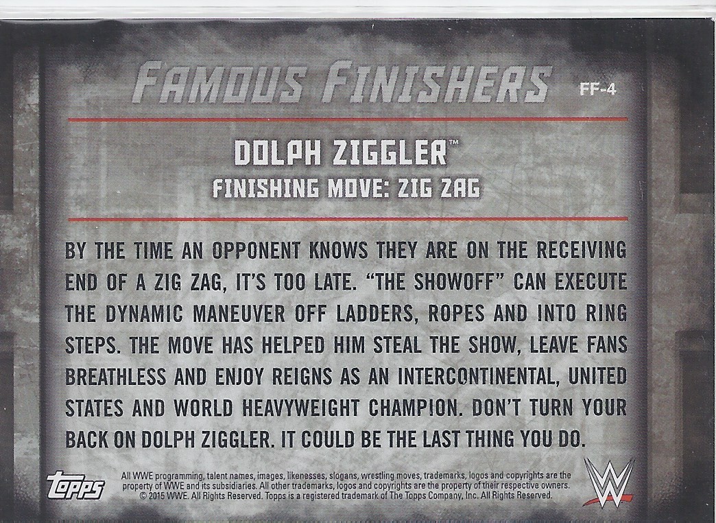 2015 TOPPS WWE UNDISPUTED Famous Finishers Card FF-4 DOLPH ZIGGLER ZIG ZAG
