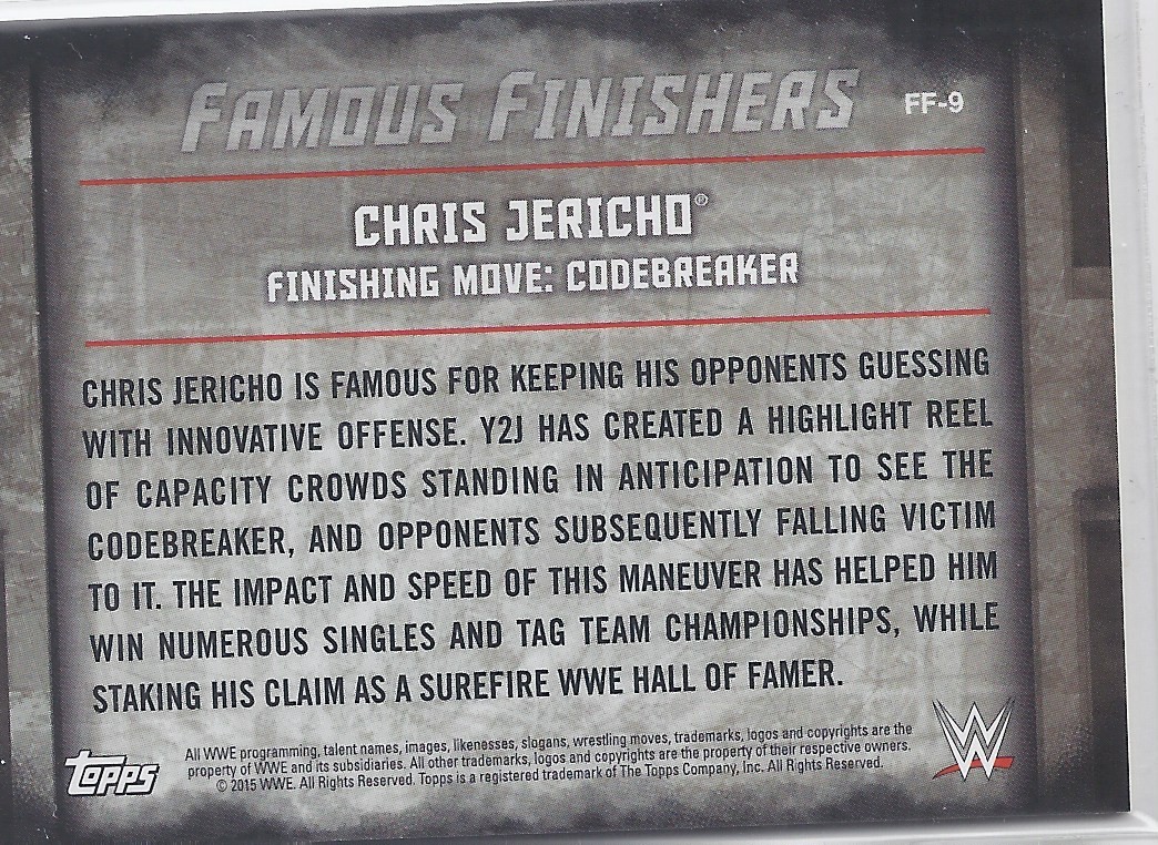 2015 TOPPS WWE UNDISPUTED Famous Finishers Card FF-9 CHRIS JERICHO CODEBREAKER