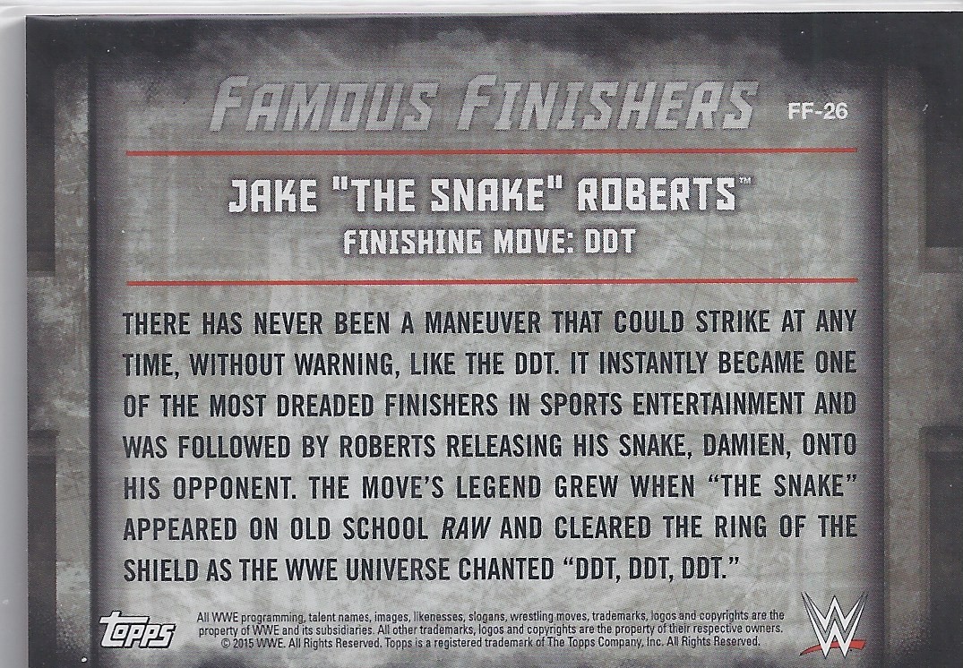 2015 TOPPS WWE UNDISPUTED Famous Finishers RED PARALLEL Card FF-26 JAKE THE SNAKE ROBERTS DDT