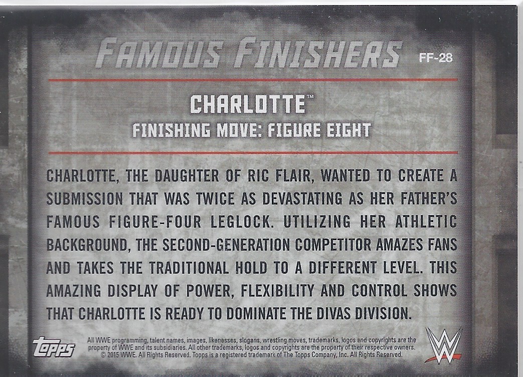 2015 TOPPS WWE UNDISPUTED Famous Finishers RED PARALLEL Card FF-28 CHARLOTTE FIGURE EIGHT