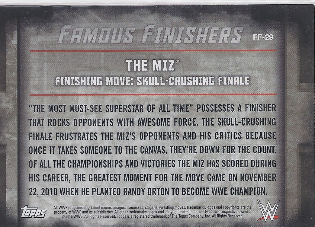 2015 TOPPS WWE UNDISPUTED Famous Finishers RED PARALLEL Card FF-29 THE MIZ SKULL CRUCHING FINALE