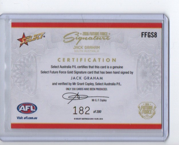 2016 AFL SELECT FUTURE FORCE RED SIGNATURE FFRS8 JACK GRAHAM - RICHMOND TIGERS #182