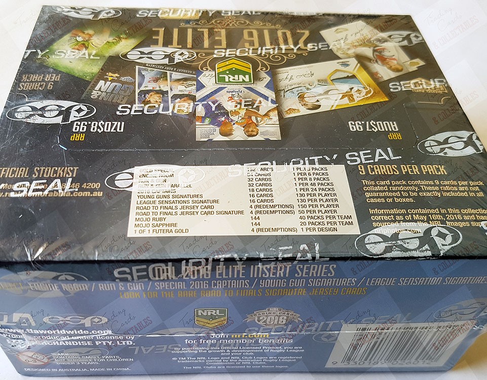 2016 ESP / TLA NRL elite factory sealed box which contains 24 packs and 9 cards per pack