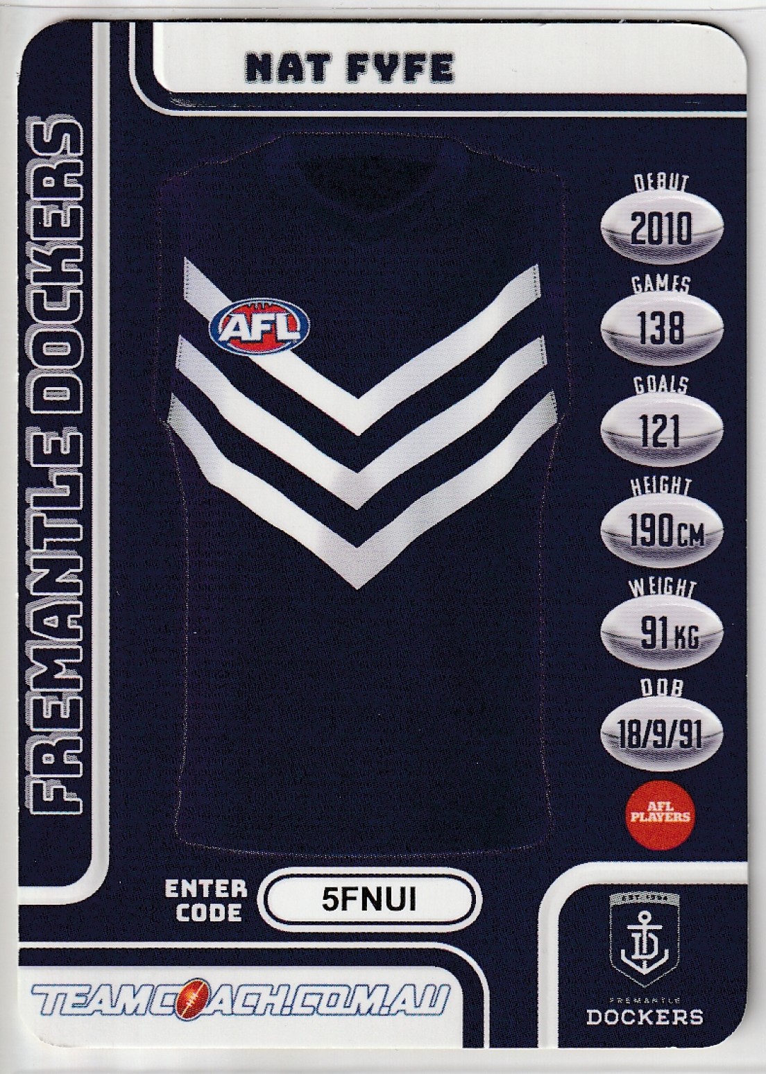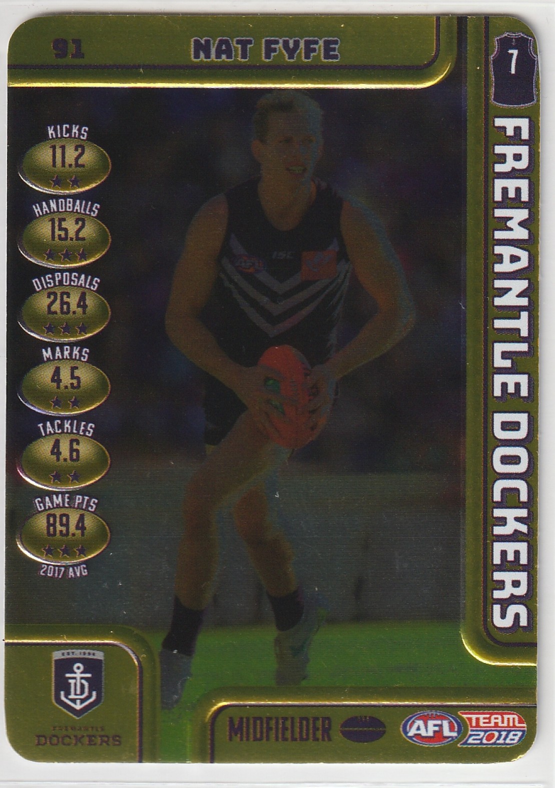 2018 TEAMCOACH GOLD #91 NAT FYFE 🏉 EX+/NM Condition 🏉💨