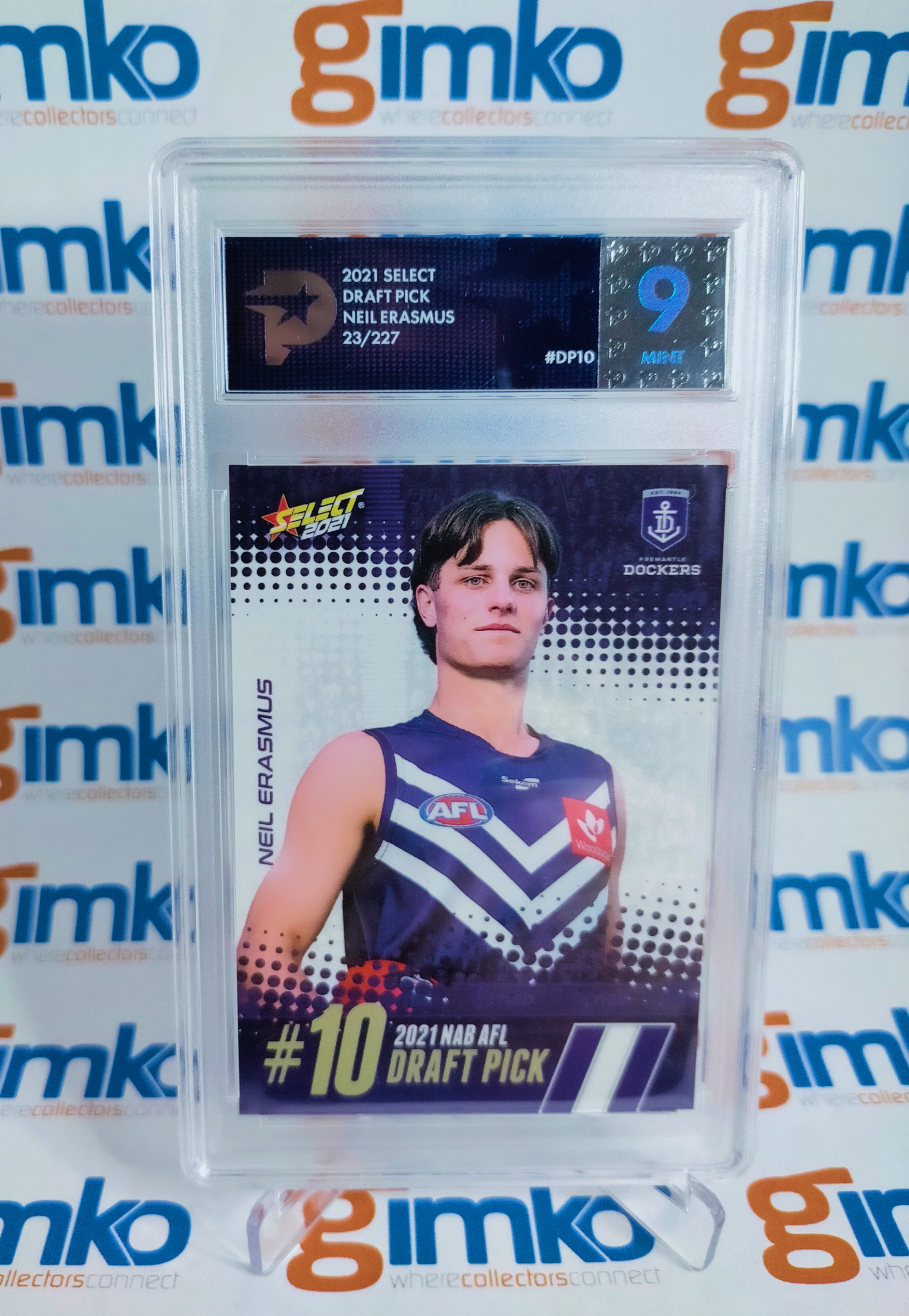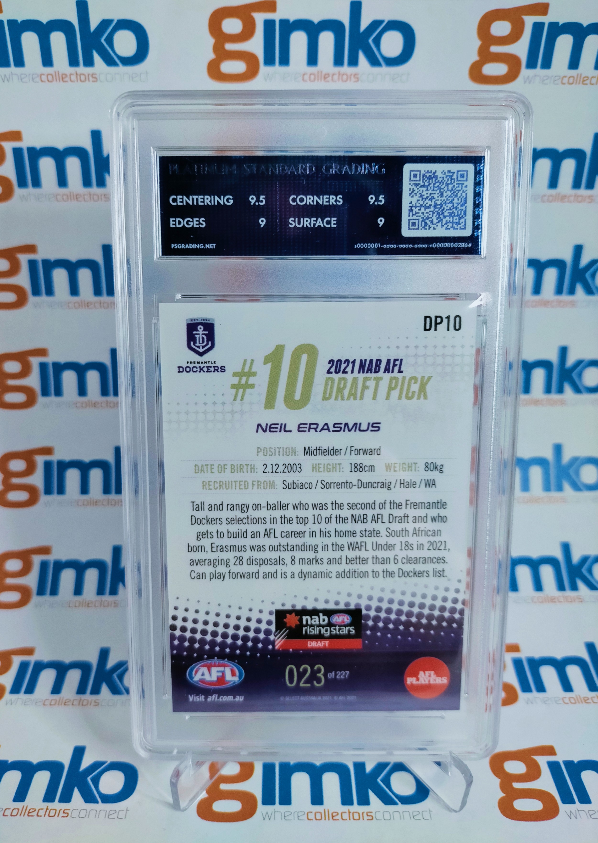 2021 AFL SELECT NAB DRAFT PICK 10 DP10 NEIL ERASMUS - FREMANTLE DOCKERS RC GRADED PSG 9