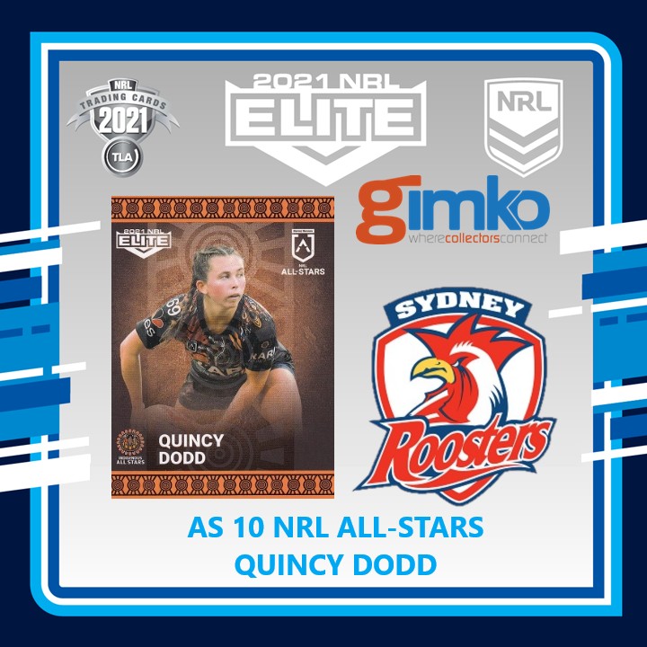 2021 NRL RUGBY LEAGUE TLA ELITE ALL-STARS CARD AS 10 QUINCY DODD - SYDNEY ROOSTERS