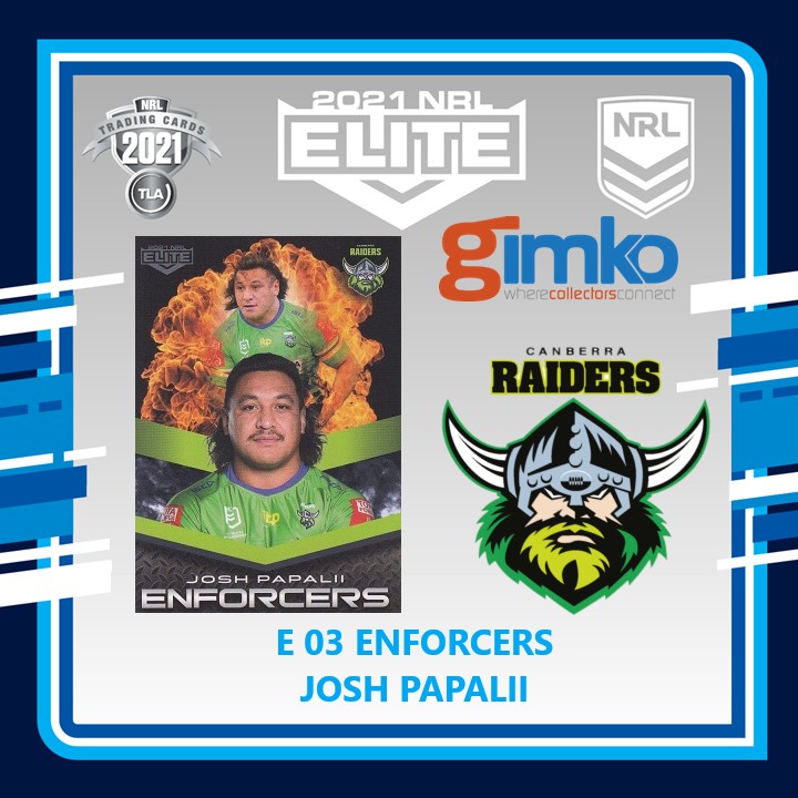 2021 NRL RUGBY LEAGUE TLA ELITE ENFORCERS CARD E 03 JOSH PAPALII - CANBERRA RAIDERS