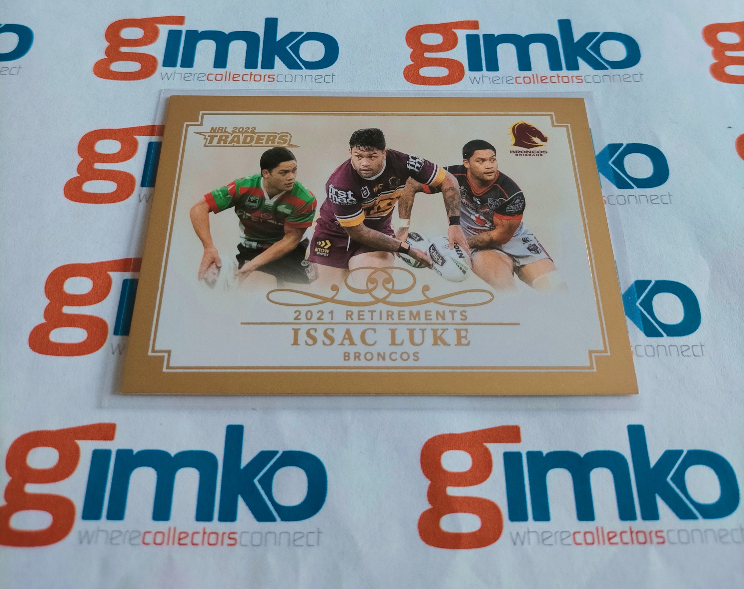 2022 TLA NRL TRADERS 2021 RETIREMENTS CARD R02 ISSAC LUKE - BRISBANE BRONCOS
