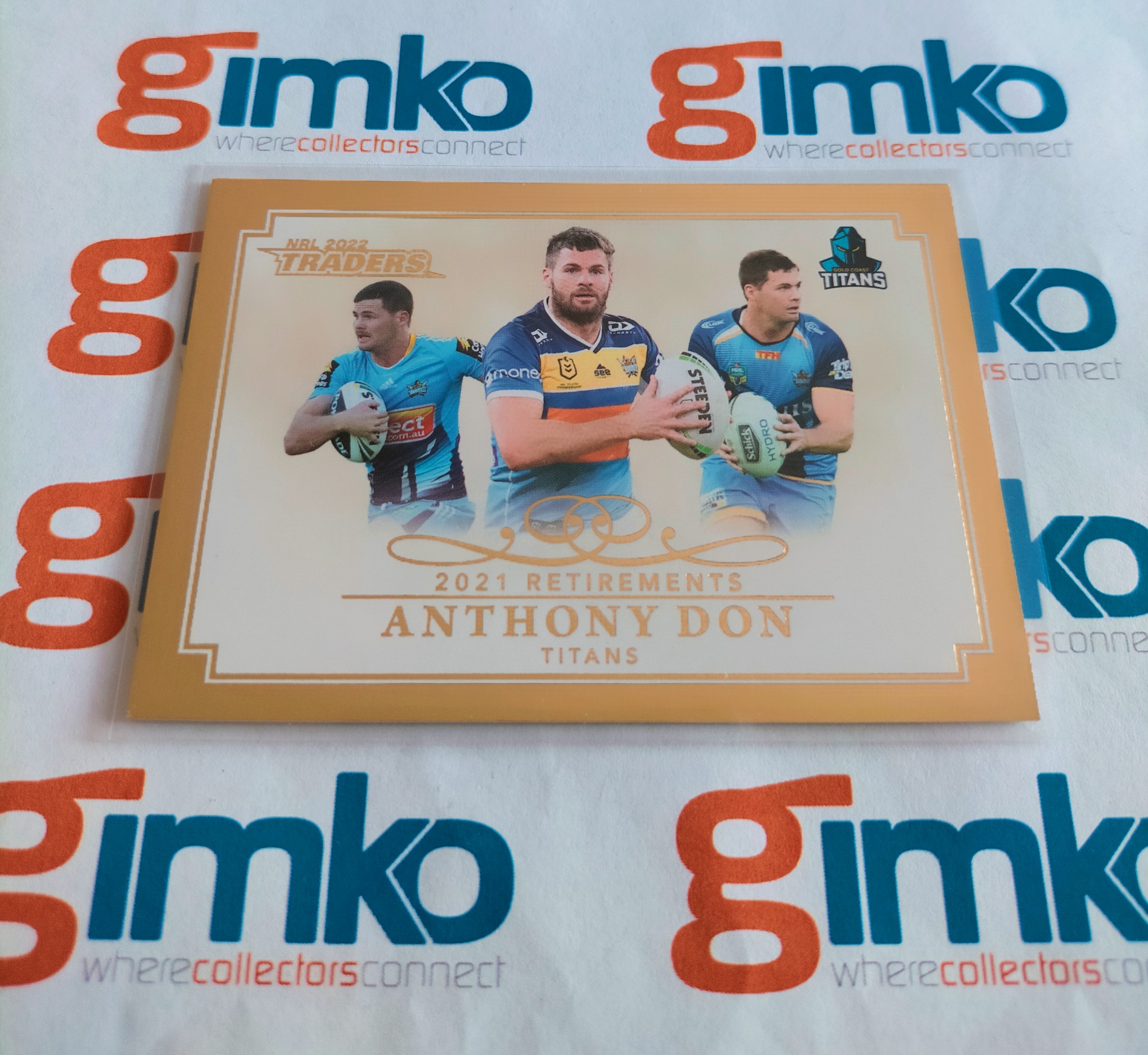 2022 TLA NRL TRADERS 2021 RETIREMENTS CARD R04 ANTHONY DON - GOLD COAST TITANS