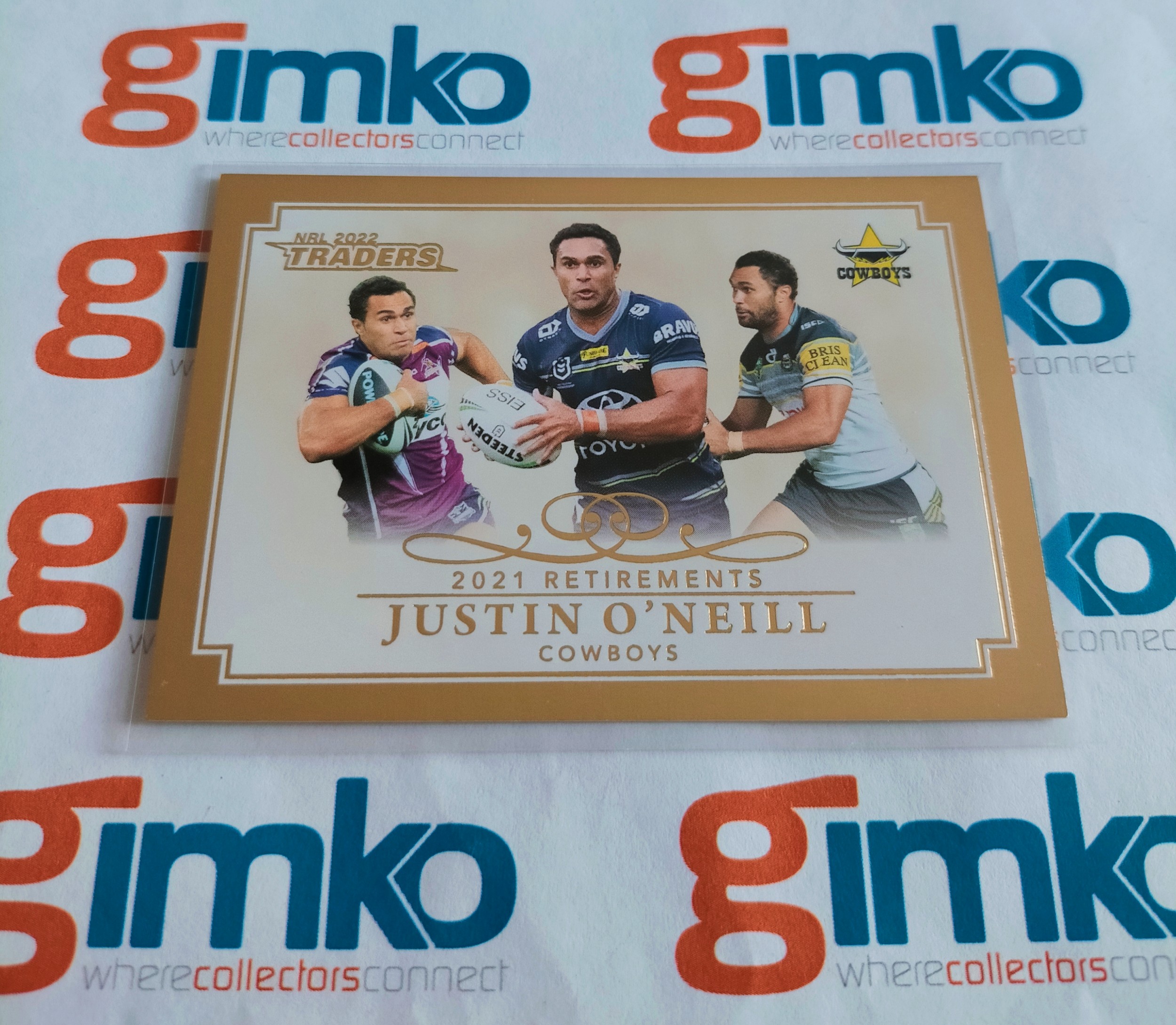 2022 TLA NRL TRADERS 2021 RETIREMENTS CARD R09 JUSTIN O'NEILL - NORTH QUEENSLAND COWBOYS