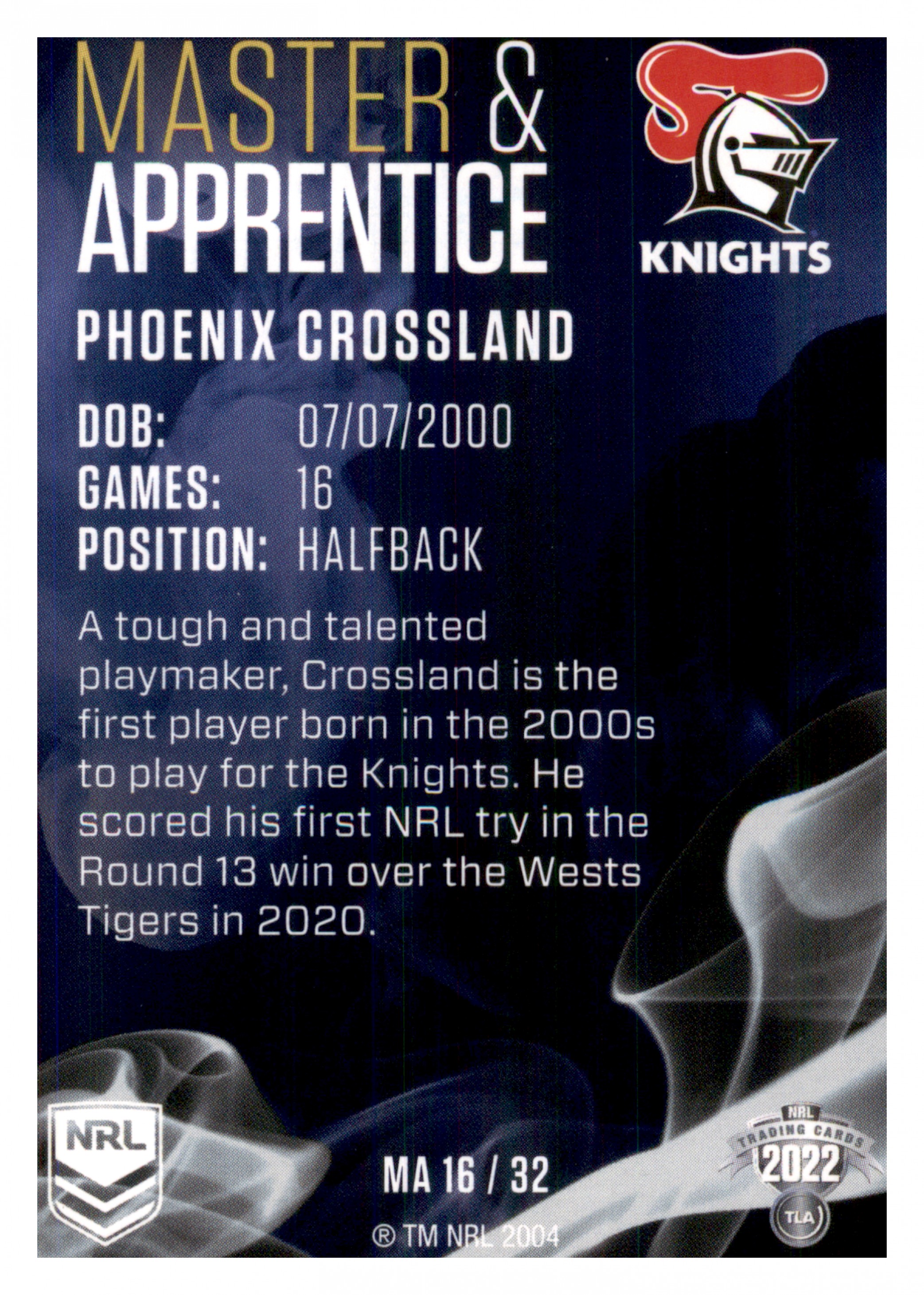 2022 TLA NRL TRADERS MASTER & APPRENTICE CARD MA16 PHOENIX CROSSLAND - NEWCASTLE KNIGHTS
