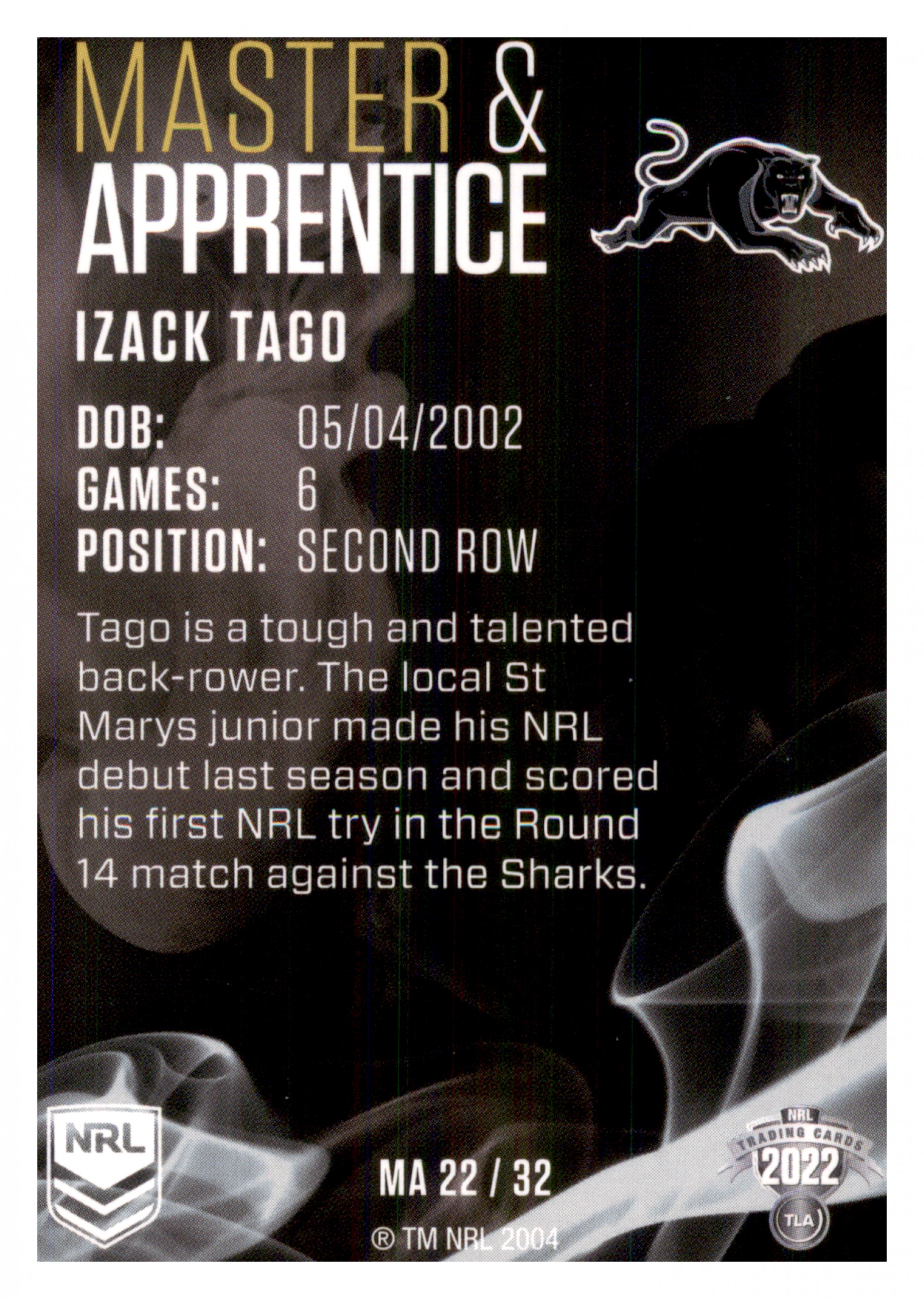 2022 TLA NRL TRADERS MASTER & APPRENTICE CARD MA22 IZACK TAGO - PENRITH PANTHERS