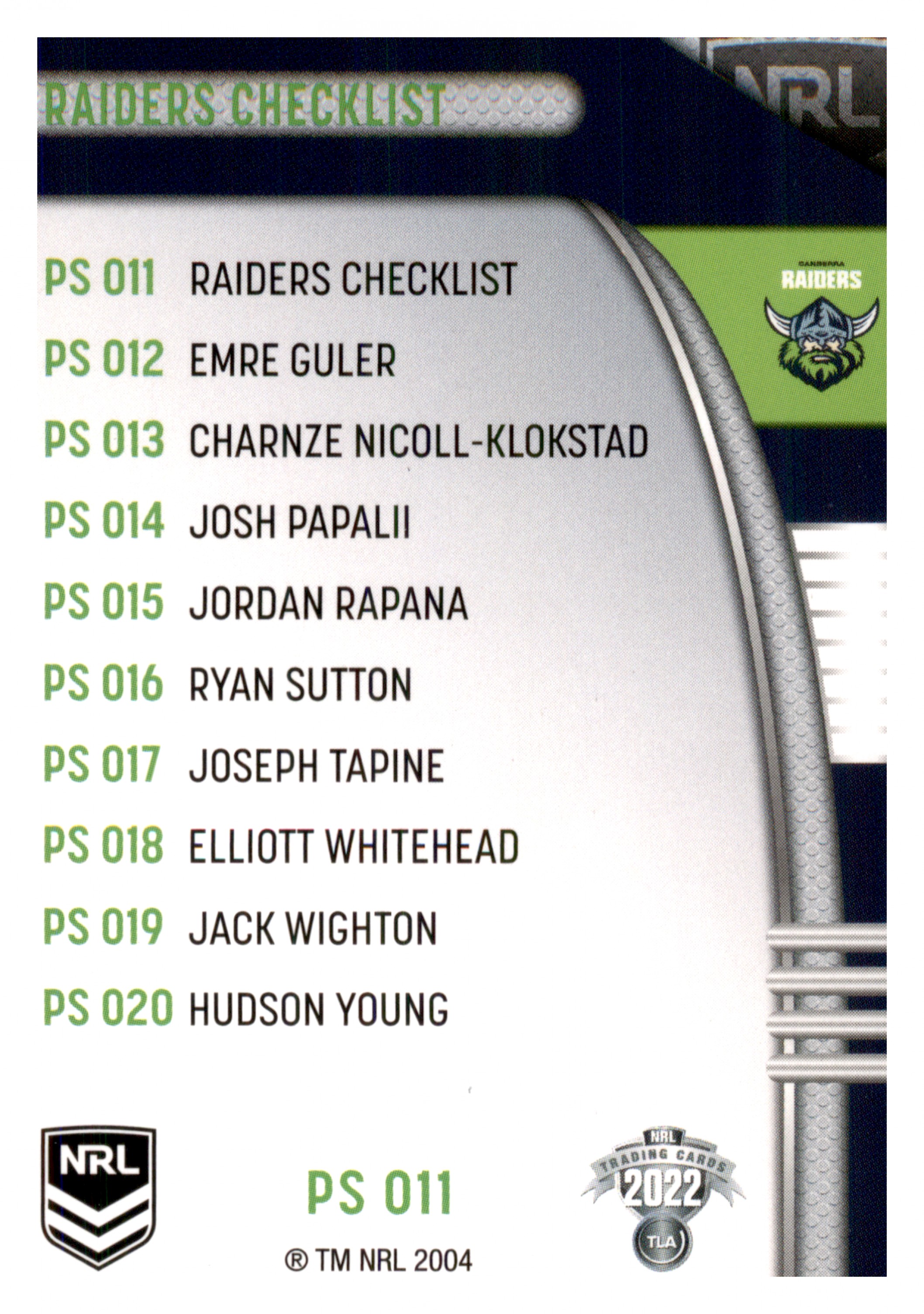 2022 TLA NRL TRADERS PARALLEL PEARL SILVER CARD PS011 CANBERRA RAIDERS CHECKLIST LOGO