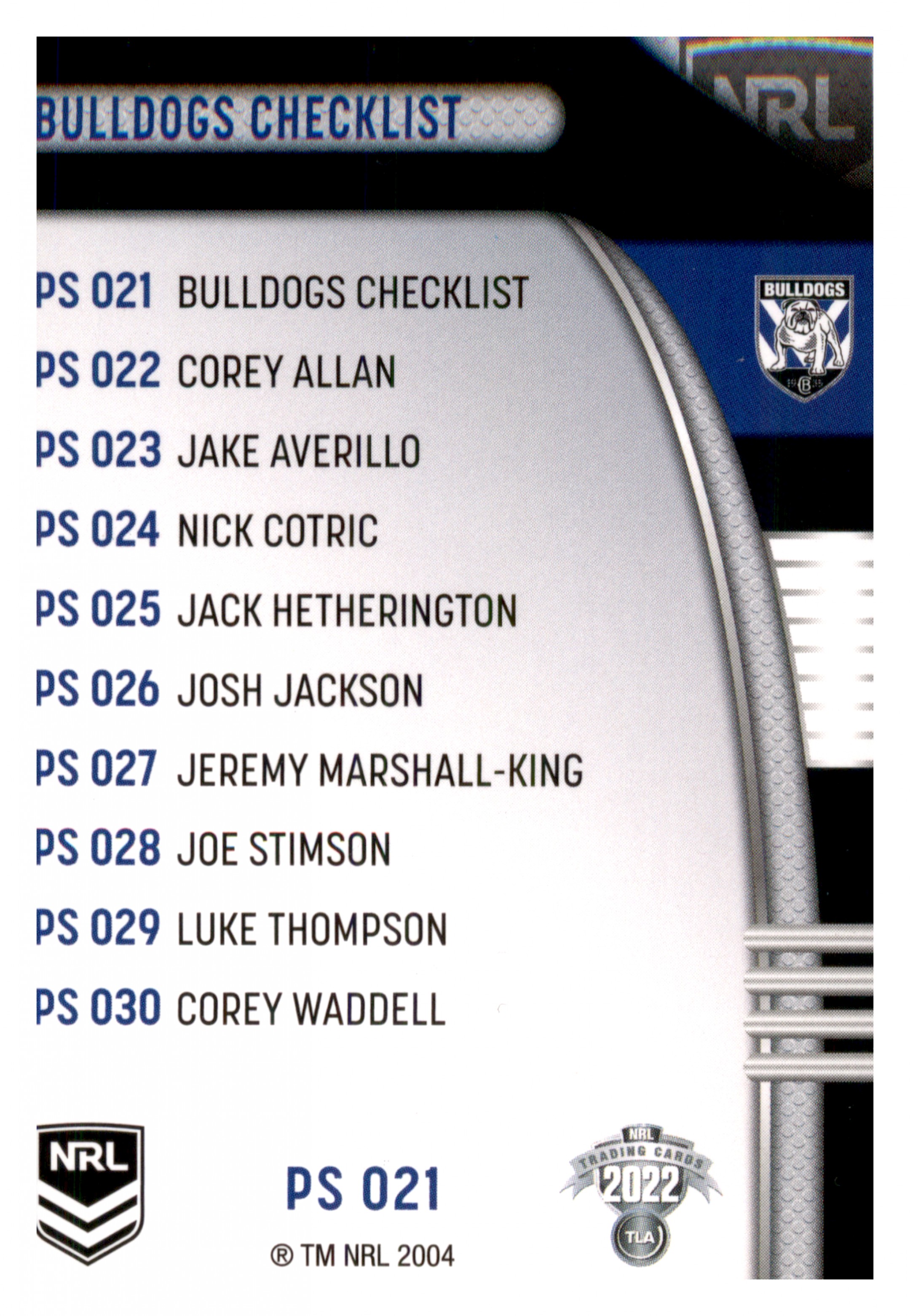 2022 TLA NRL TRADERS PARALLEL PEARL SILVER CARD PS021 CANTERBURY BULLDOGS CHECKLIST LOGO