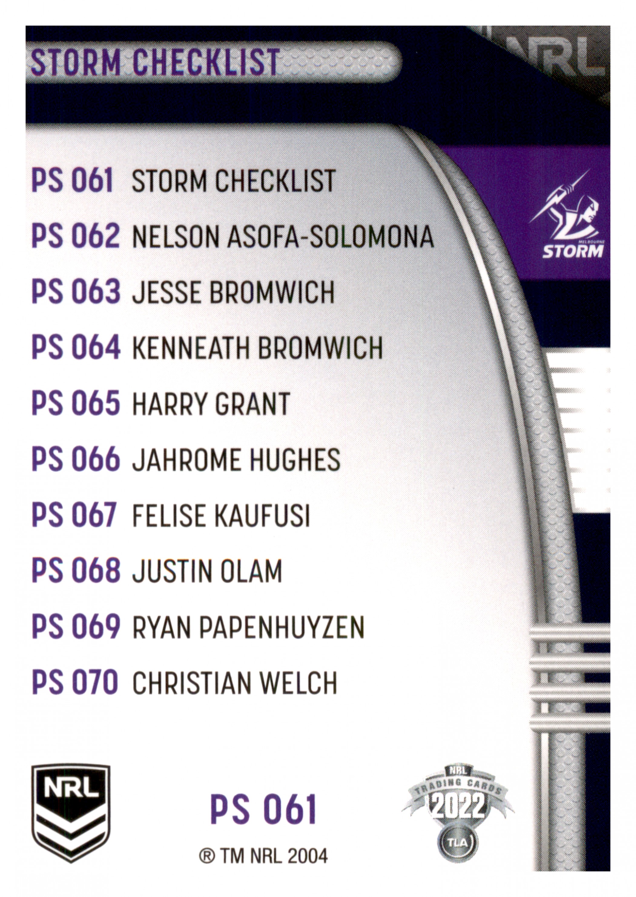 2022 TLA NRL TRADERS PARALLEL PEARL SILVER CARD PS061 MELBOURNE STORM CHECKLIST LOGO