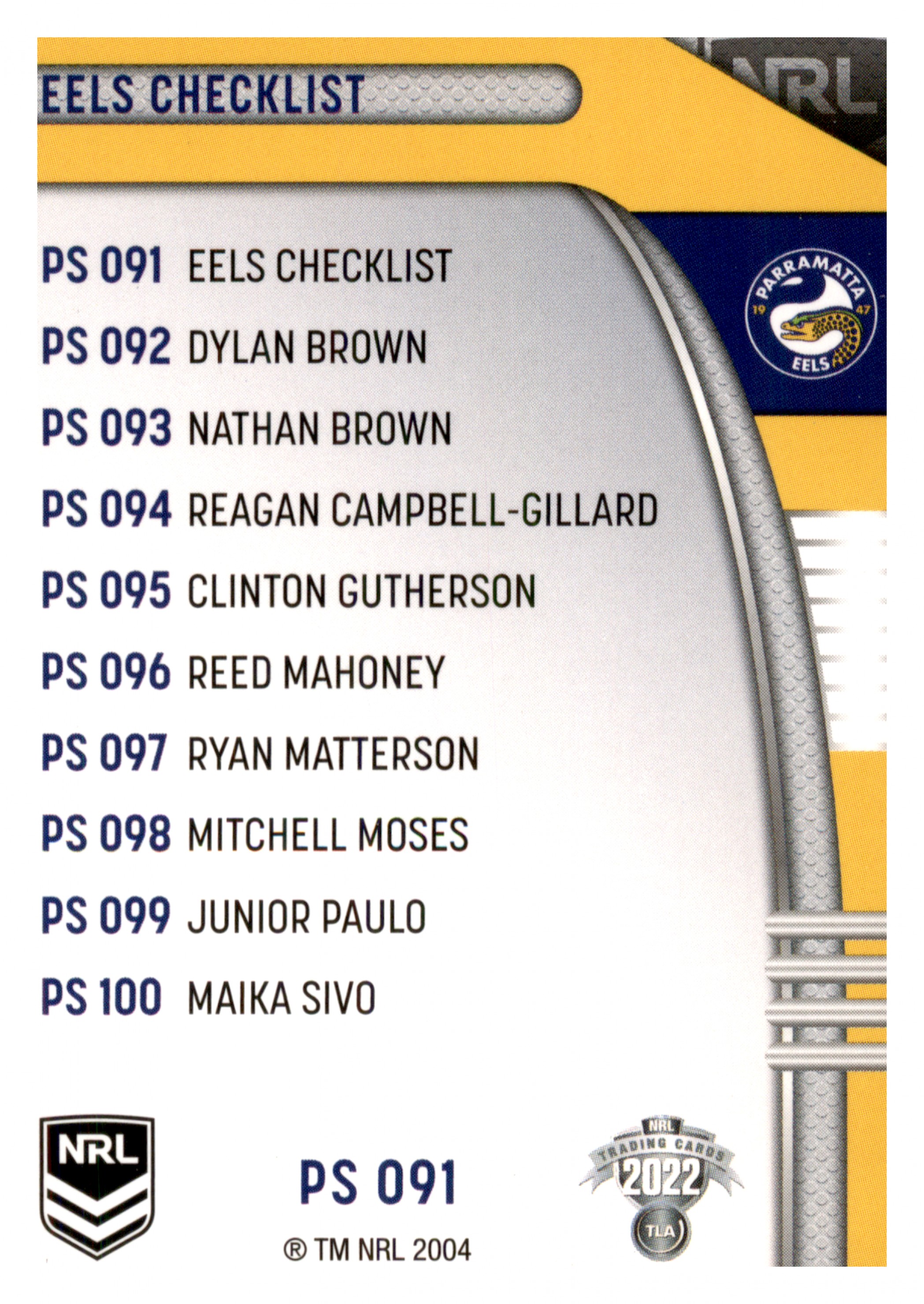 2022 TLA NRL TRADERS PARALLEL PEARL SILVER CARD PS091 PARRAMATTA EELS CHECKLIST LOGO