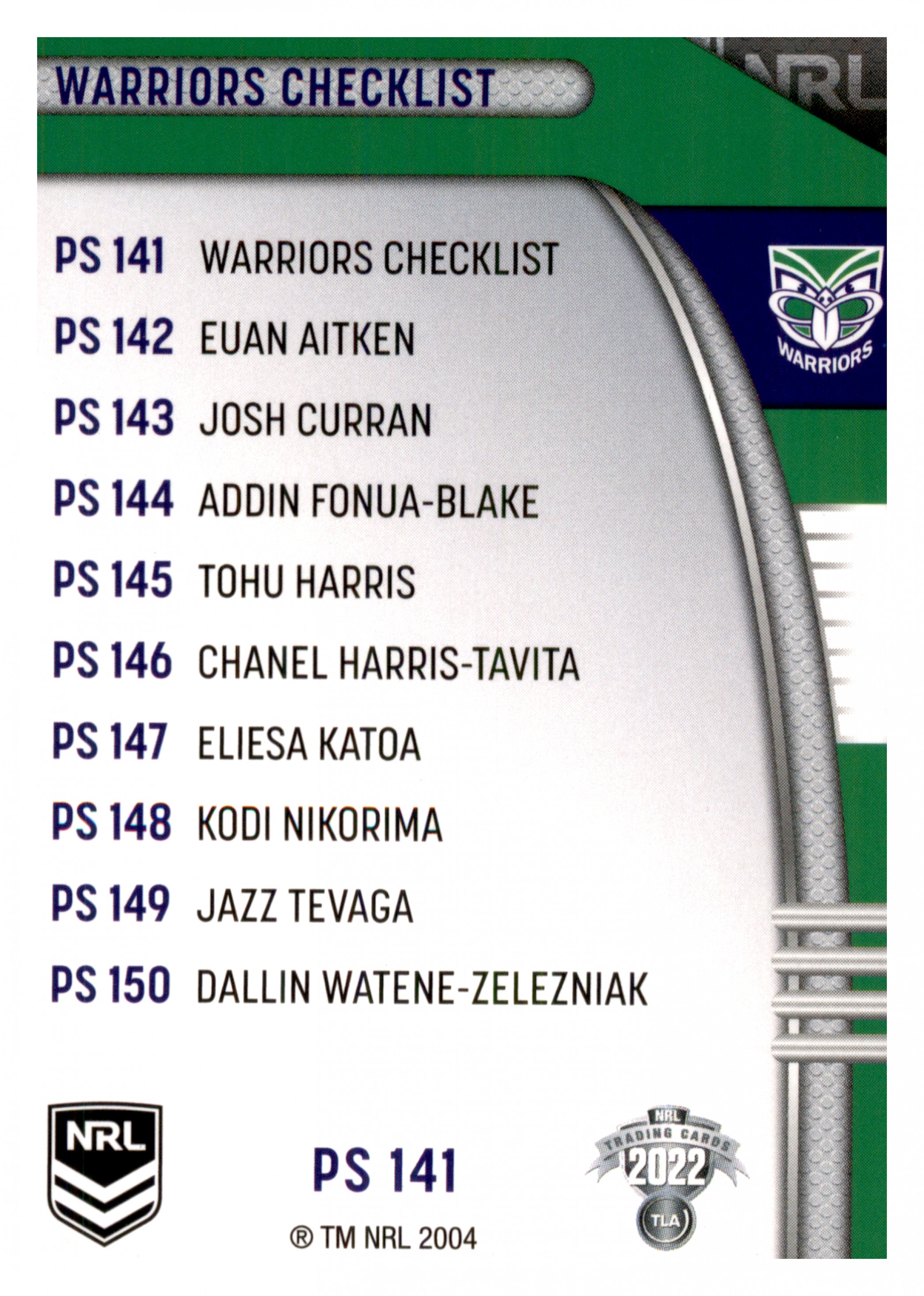 2022 TLA NRL TRADERS PARALLEL PEARL SILVER CARD PS141 NEW ZEALAND WARRIORS CHECKLIST LOGO