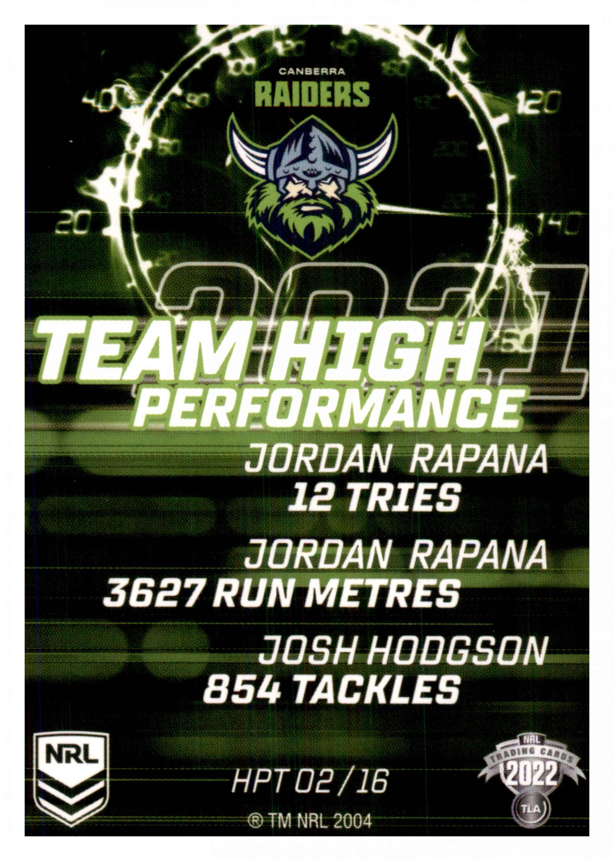 2022 TLA NRL TRADERS TEAM HIGH PERFORMANCE CARD HPT02 CANBERRA RAIDERS