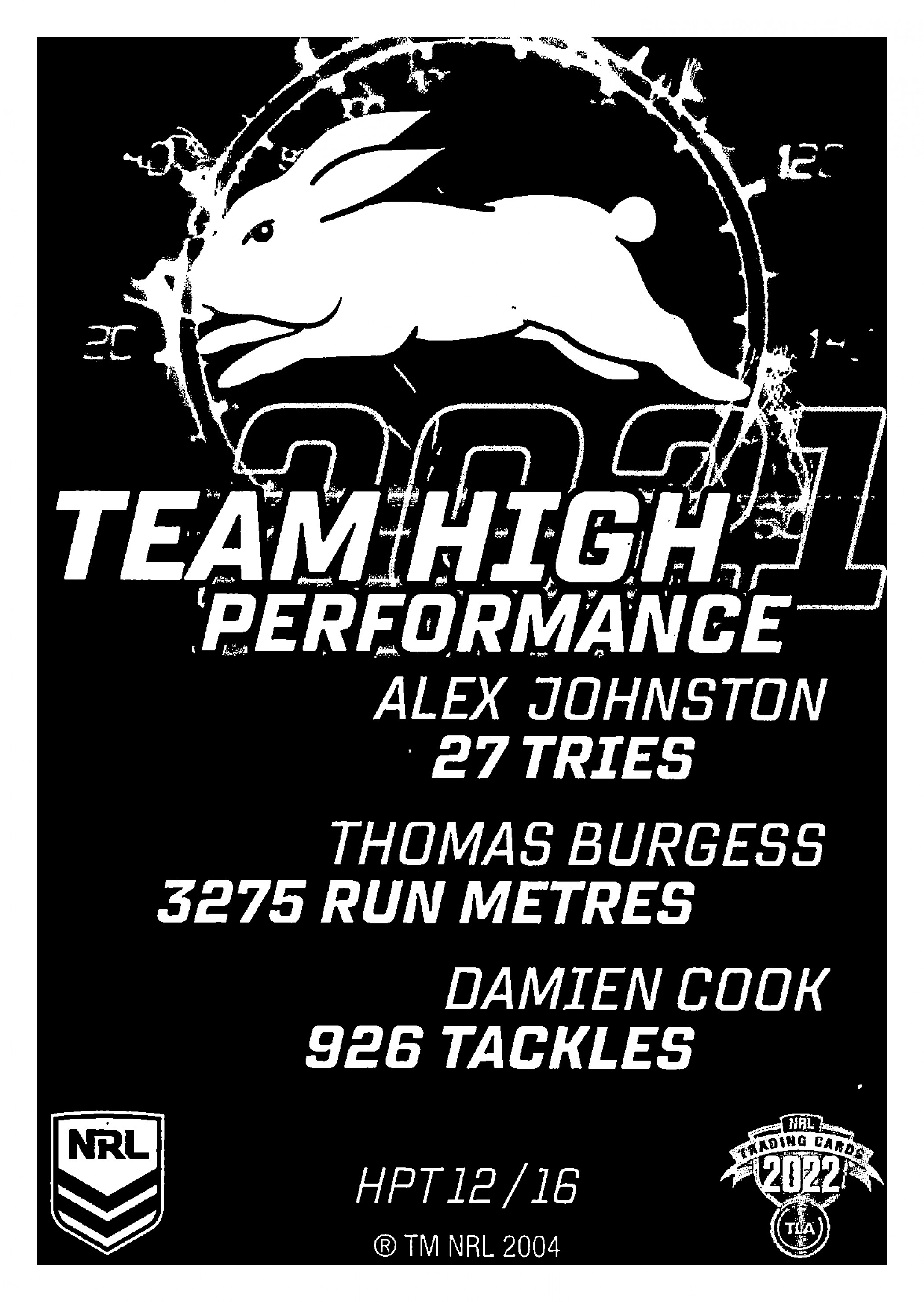 2022 TLA NRL TRADERS TEAM HIGH PERFORMANCE CARD HPT12 SOUTH SYDNEY RABBITOHS