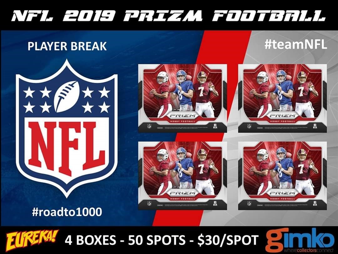 #969 NFL FOOTBALL 2019 PRIZM 4-BOX PLAYER BREAK - SPOT 8