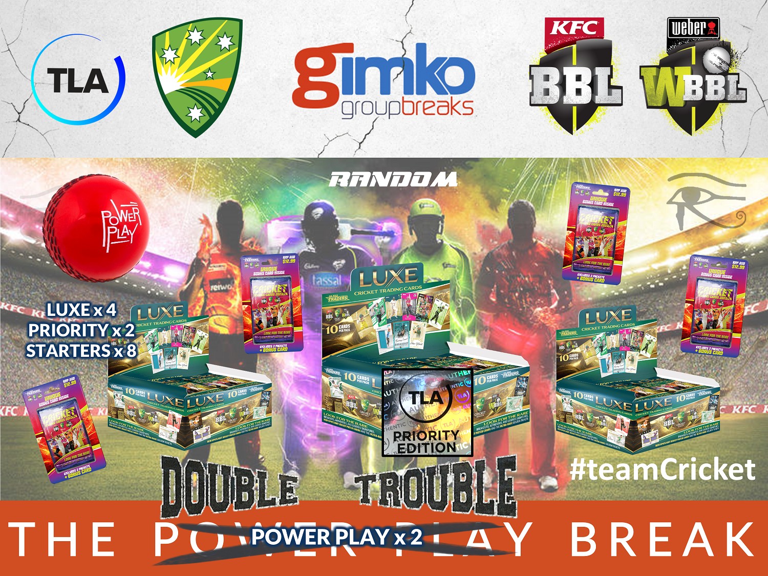 - This is a Random break and there will be 10 spots available in this break, one for each CRICKET BBL/WBBL team and Australia Men and Australia Women Teams.