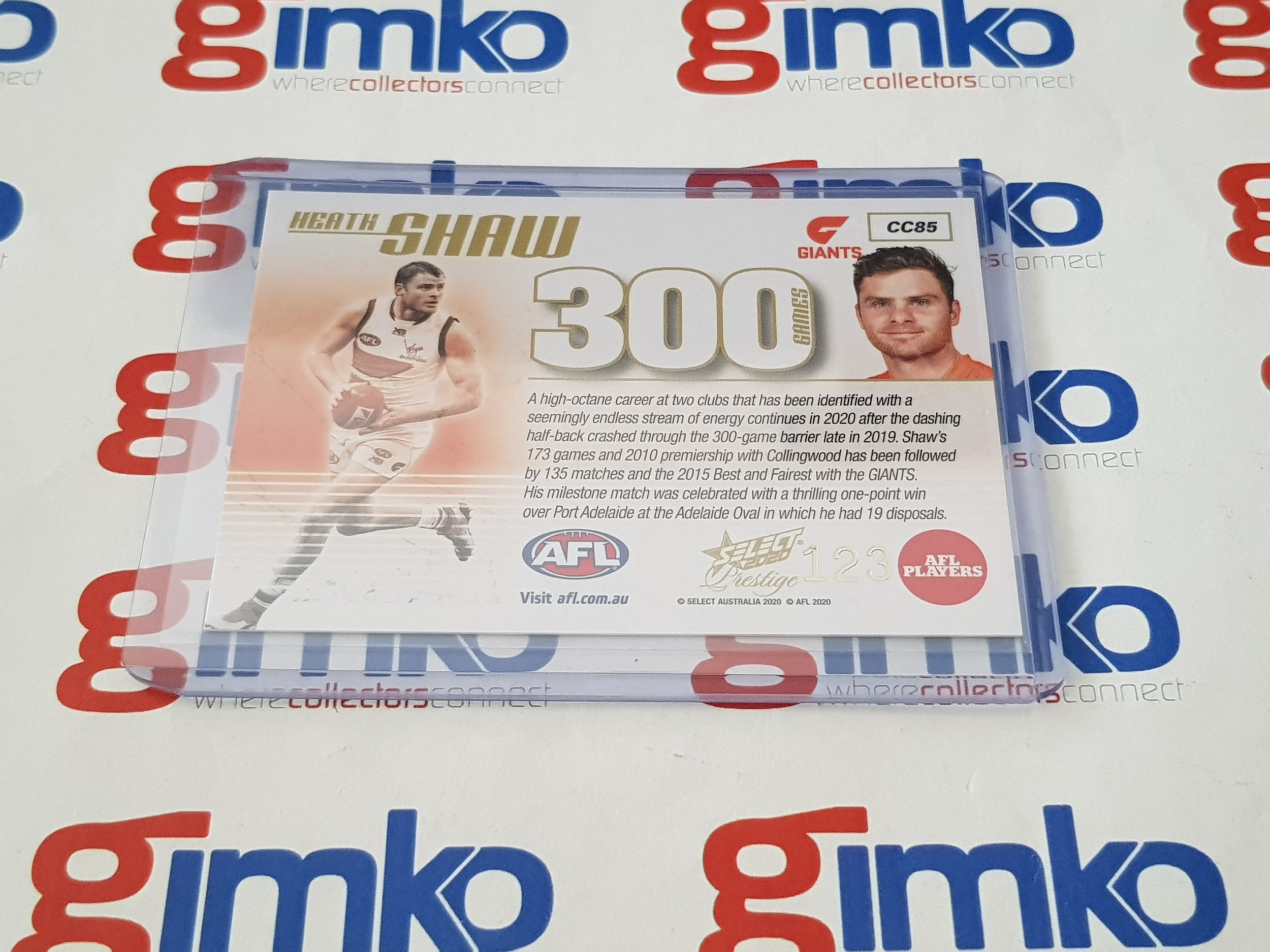 2020 AFL Select Footy Stars Prestige 300 Games Case Card CC85 Heath Shaw #123 - GWS