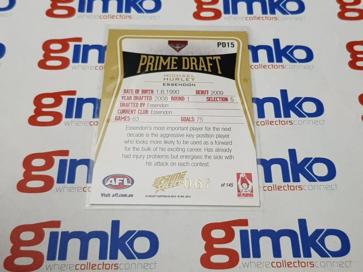 2013 AFL SELECT PRIME DRAFT GOLD PD15 MICHAEL HURLEY - ESSENDON BOMBERS #067/145