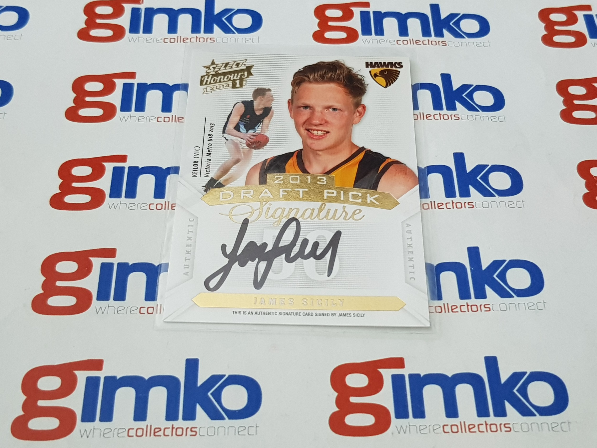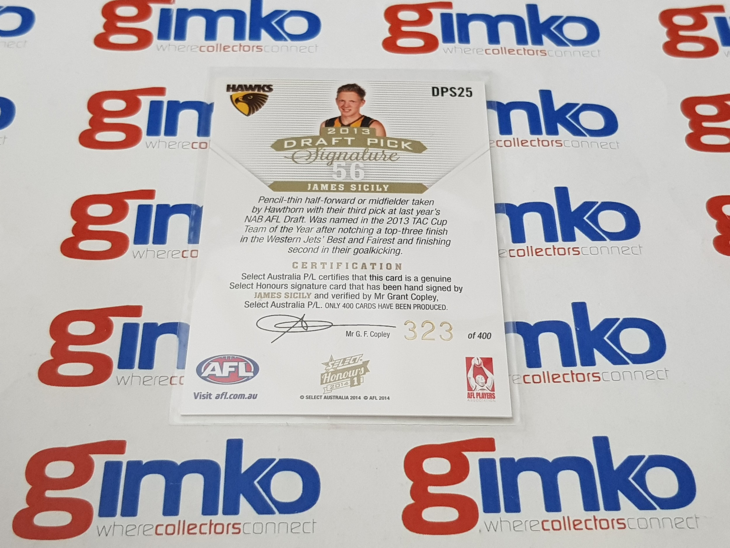 2014 AFL SELECT HONOURS DRAFT PICK SIGNATURE DPS25 JAMES SICILY - HAWTHORN HAWKS #323/400