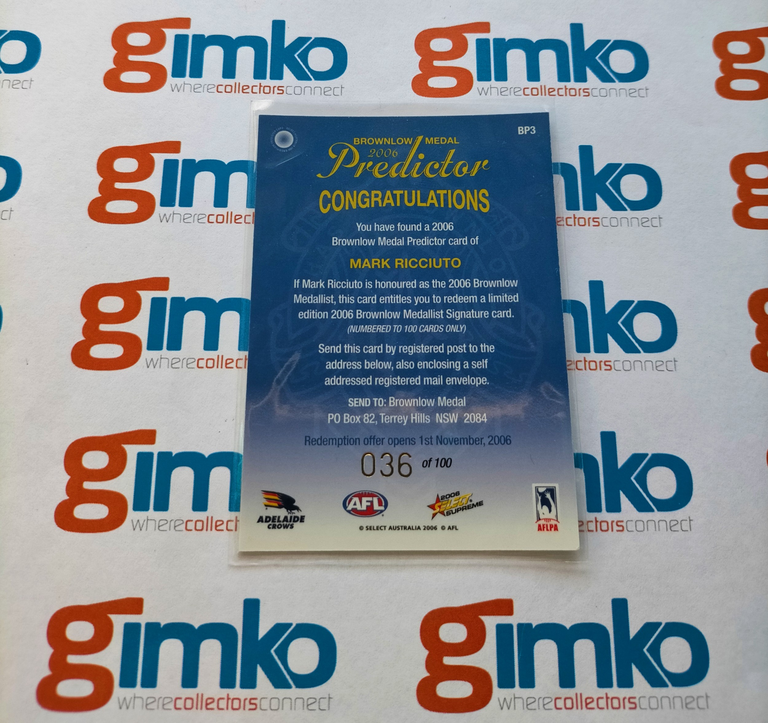 2006 AFL SELECT SUPREME BROWNLOW MEDAL PREDICTOR BP3 MARK RICCIUTO - ADELAIDE CROWS #036/100