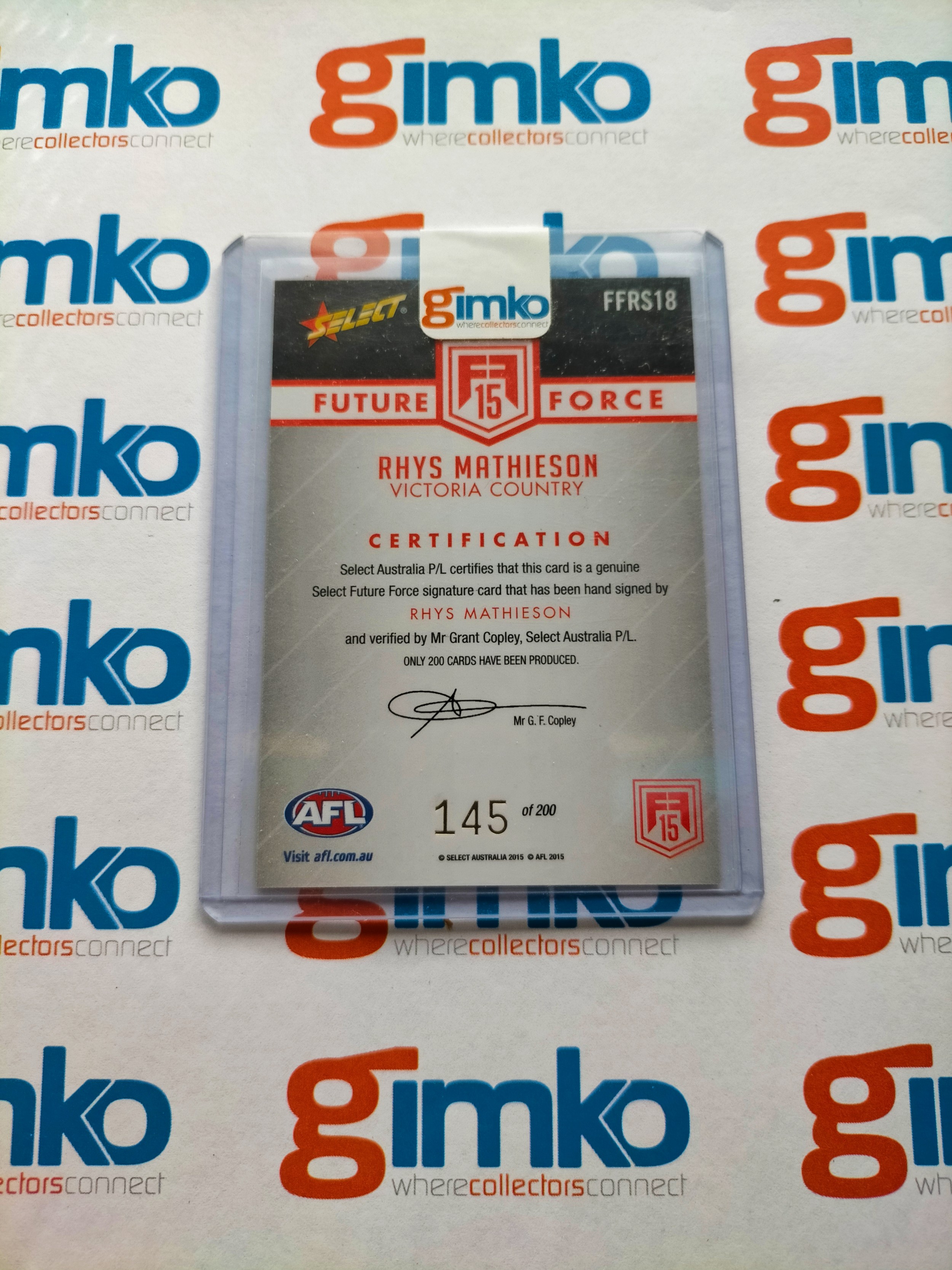 2015 AFL SELECT FUTURE FORCE RED SIGNATURE FFRS18 RHYS MATHIESON - BRISBANE LIONS #145/200