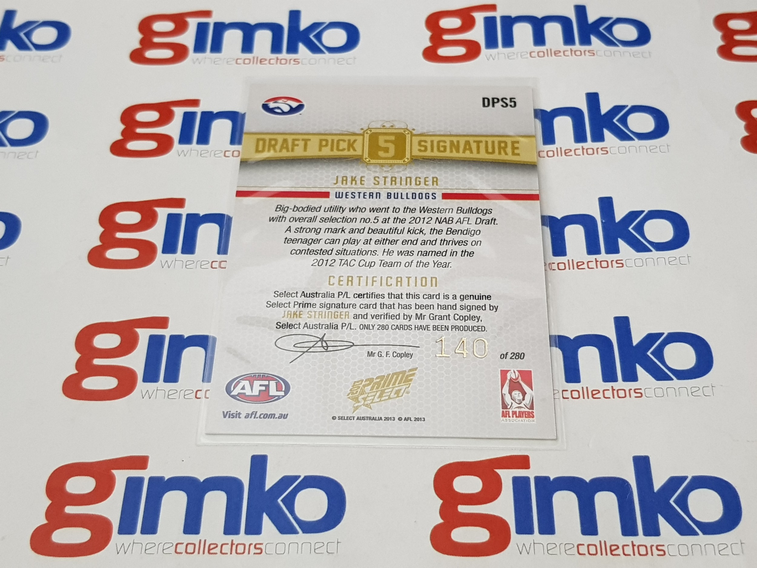 2013 AFL SELECT PRIME DRAFT PICK SIGNATURE DPS5 JAKE STRINGER - WESTERN BULLDOGS / ESSENDON BOMBERS #140/280