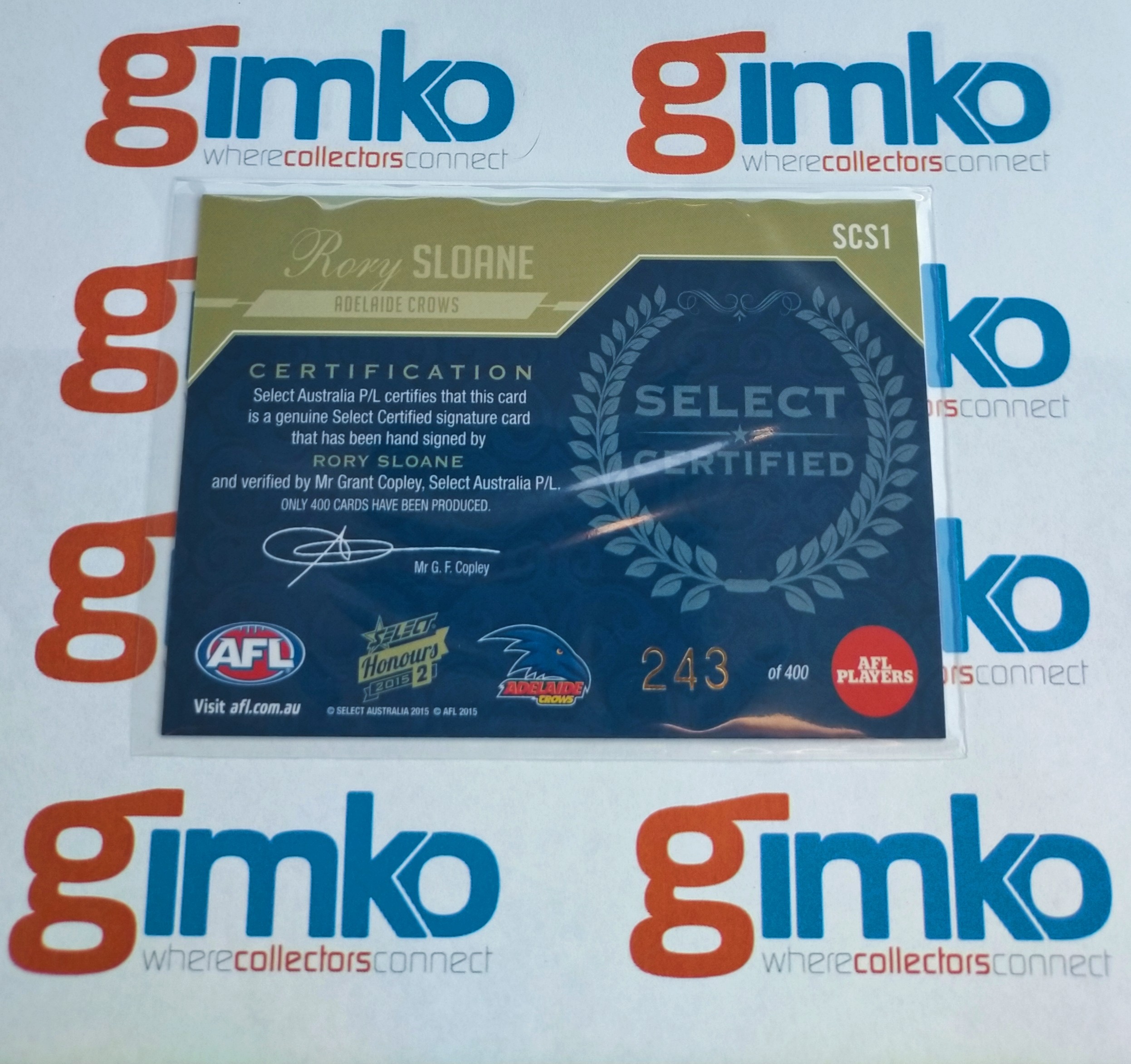 2015 AFL SELECT HONOURS CERTIFIED SIGNATURE SCS1 RORY SLOANE - ADELAIDE CROWS #243/400