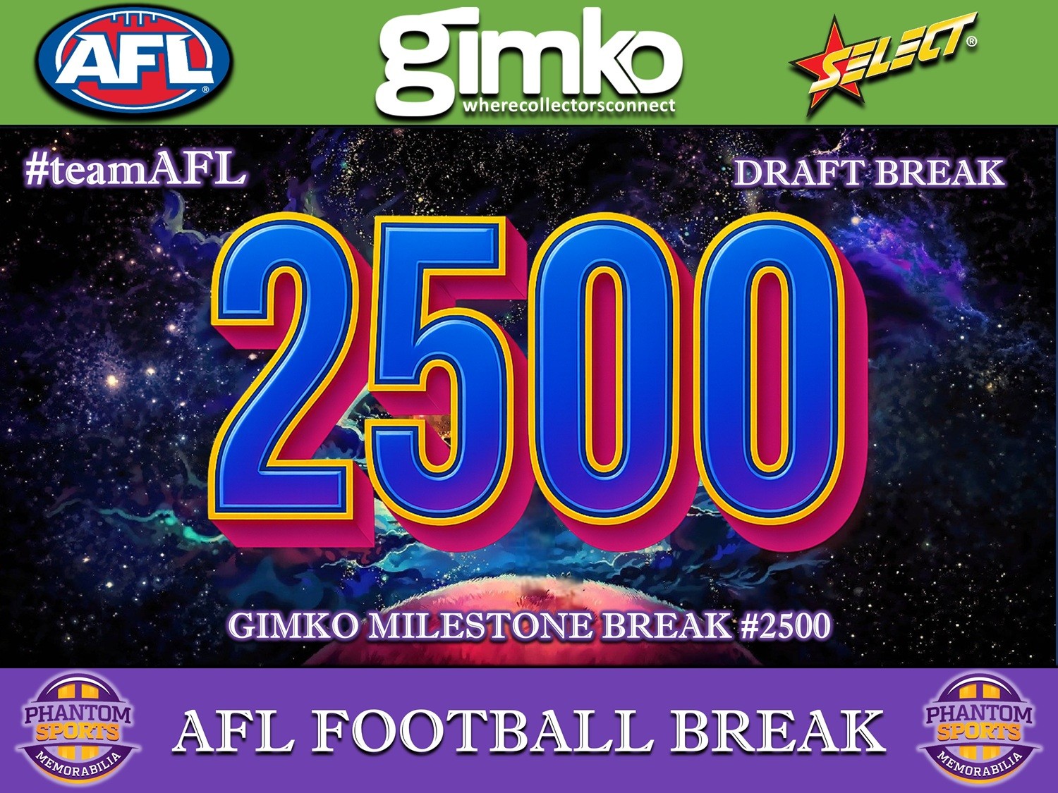 #2500 AFL FOOTBALL MILESTONE SIX BOX BREAK - SPOT 7
