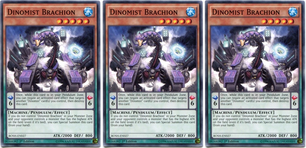 Item: 3 copies of Yu-Gi-Oh! Dinomist Brachion (BOSH-EN027) - Common - NM-MINT - 1st Edition