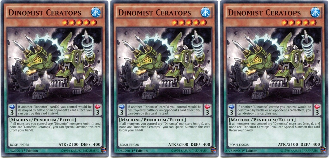 Item: 3 copies of Yu-Gi-Oh! Dinomist Ceratops (BOSH-EN028) - Common - NM-MINT - 1st Edition