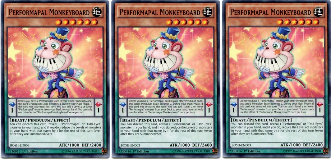 Item: 3 copies of Yu-Gi-Oh! Performapal Monkeyboard (BOSH-EN003) - Common - NM-MINT - 1st Edition