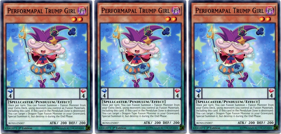 Item: 3 copies of Yu-Gi-Oh! Performapal Trump Girl (BOSH-EN007) - Common - NM-MINT - 1st Edition
